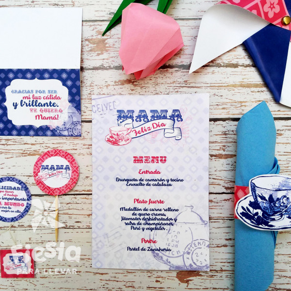 El kit del día de la madre se llama "TARDE DE TÉ" Le digo así por el diseño vintage que elegí, pero puede ser un desayuno, un almuerzo, brunch, comida o tarde de café como prefieras. Está hecho para decorar y poner una mesa bonita en forma rápida y económica usando tu misma vajilla que tengas, el chiste es reunirse la familia y festejar a esa señora que nos dió la vida.