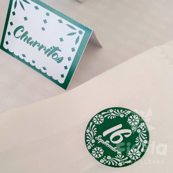 Etiquetas redondas verdes y rojas con diseño 16 Septiembre